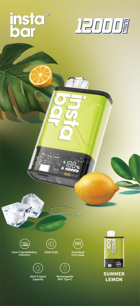 The Instabar Ultra 12000 Puffs Disposable Vape is perfect for those who want a reliable and flavorful vaping device that lasts. With its large puff count, easy-to-use design, and variety of flavors, it offers a premium vaping experience without the hassle of charging or refilling. Enjoy smooth and satisfying puffs anytime, anywhere, with the Instabar Ultra.